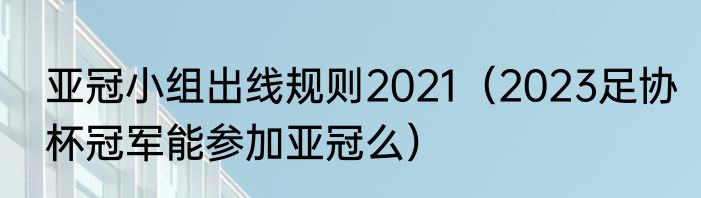 亚冠小组出线规则2021(2023足协杯冠军能参加亚冠么)