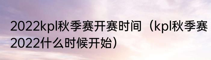 2022kpl秋季赛开赛时间(kpl秋季赛2022什么时候开始)