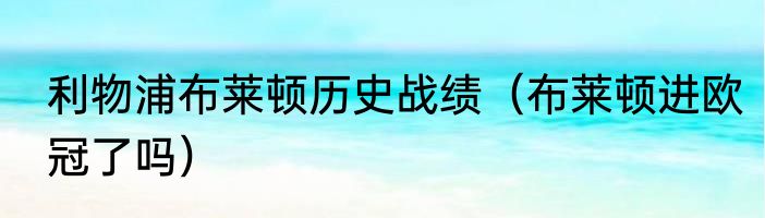 利物浦布莱顿历史战绩(布莱顿进欧冠了吗)