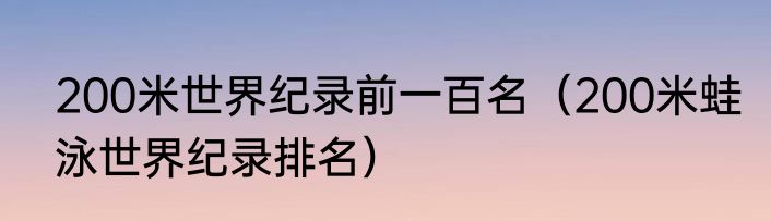 200米世界纪录前一百名(200米蛙泳世界纪录排名)