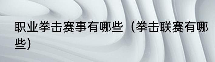 职业拳击赛事有哪些(拳击联赛有哪些)