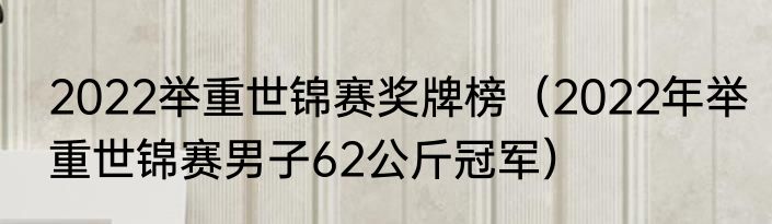 2022举重世锦赛奖牌榜(2022年举重世锦赛男子62公斤冠军)
