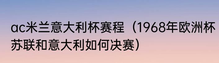 ac米兰意大利杯赛程(1968年欧洲杯苏联和意大利如何决赛)