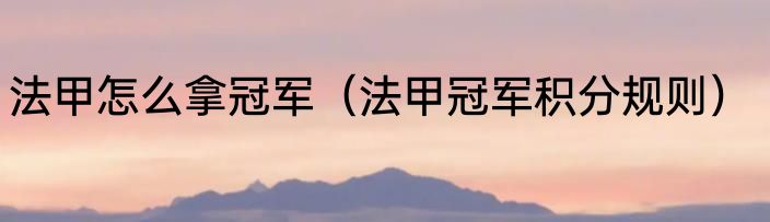 法甲怎么拿冠军?