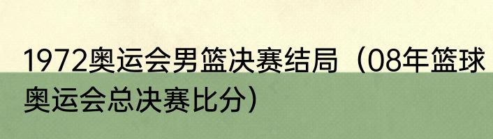 1972奥运会男篮决赛结局(08年篮球奥运会总决赛比分)