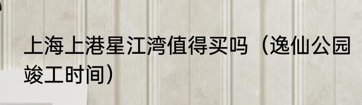 上海上港星江湾值得买吗(逸仙公园竣工时间)