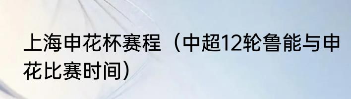 上海申花杯赛程(中超12轮鲁能与申花比赛时间)
