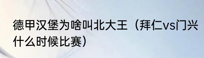 德甲汉堡为啥叫北大王(拜仁vs门兴什么时候比赛)
