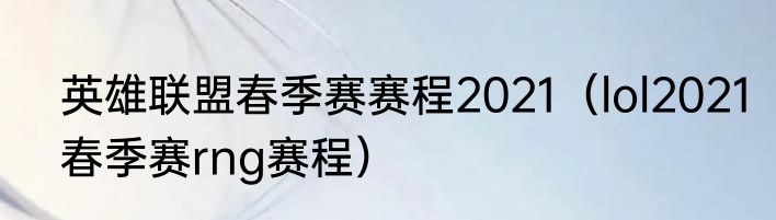 英雄联盟春季赛赛程2021(lol2021春季赛rng赛程)