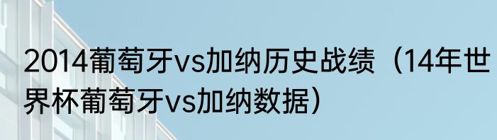 葡萄牙和加纳历史交锋记录只有一次,那就是在2014年巴西世界杯的小组赛上,当时葡萄牙队以2-1力克加纳队,取得胜利。