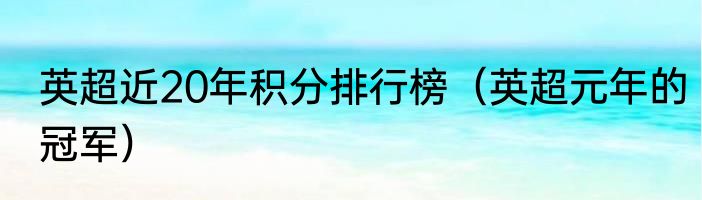 简介英超近20年积分排行榜?英超联赛历届冠军(1992-2020)赛季球队主教练积分2000 01曼联亚历克斯·弗格森802001 02阿森纳阿尔赛纳·温格87200