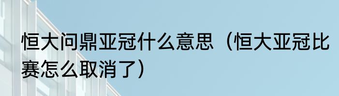 恒大问鼎亚冠什么意思(恒大亚冠比赛怎么取消了)