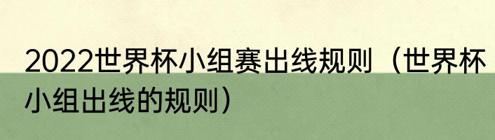 2022世界杯小组赛出线规则(世界杯小组出线的规则)