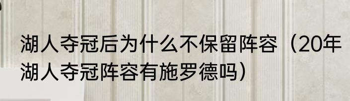 湖人夺冠后为什么不保留阵容(20年湖人夺冠阵容有施罗德吗)