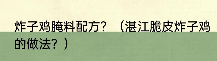 提及炸子鸡腌料配方?(湛江脆皮炸子鸡的做法?)的相关内容,许多人不太了解,来看看小月的介绍吧!