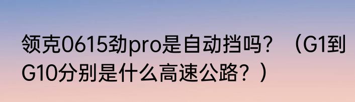 提及领克0615劲pro是自动挡吗?(G1到G10分别是什么高速公路?)的相关内容,许多人不太了解,来看看小燕的介绍吧!