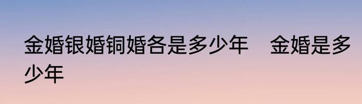 简介金婚银婚铜婚各是多少年?金婚50年,银婚25年,铜婚7年。金婚,欧洲风俗指结婚五十周年。结婚后的每一个纪念日都有不同的名称,不同的象征