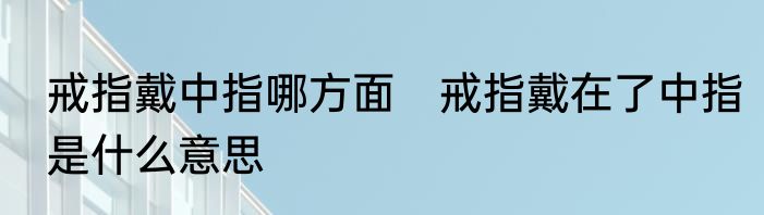 戒指戴中指哪方面 戒指戴在了中指是什么意思