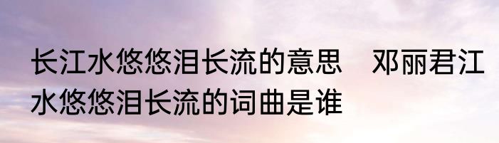 长江水悠悠泪长流的意思 邓丽君江水悠悠泪长流的词曲是谁