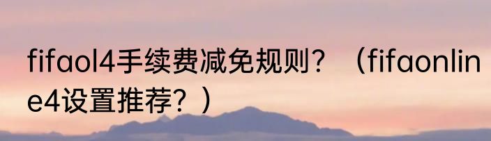 提及fifaol4手续费减免规则?(fifaonline4设置推荐?)的相关内容,许多人不太了解,来看看小智的介绍吧!