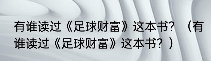 有谁读过《足球财富》这本书?(有谁读过《足球财富》这本书?)