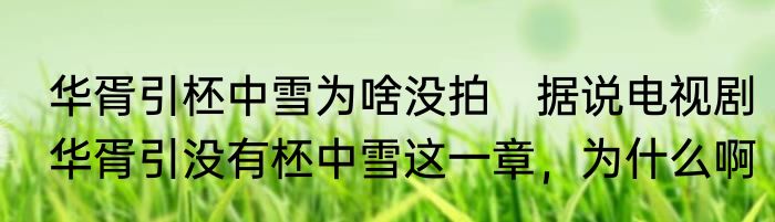 据说电视剧华胥引没有柸中雪这一章,为什么啊?