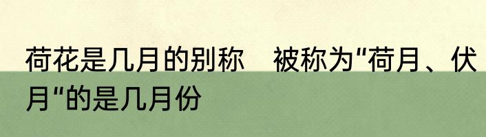 荷花是几月的别称 被称为“荷月、伏月“的是几月份