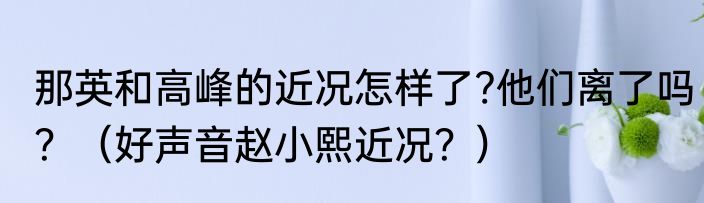 提及那英和高峰的近况怎样了?他们离了吗?(好声音赵小熙近况?)的相关内容,许多人不太了解,来看看小丽的介绍吧!