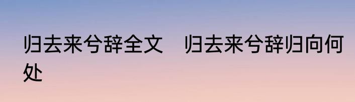 归去来兮,回到何处?这是一个关于人生归宿的问题。