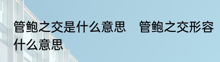 管鲍之交是什么意思 管鲍之交形容什么意思