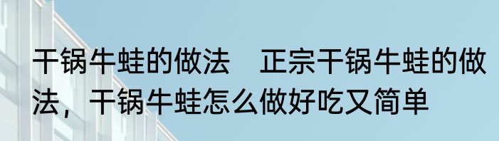 正宗干锅牛蛙的做法,干锅牛蛙怎么做好吃又简单?