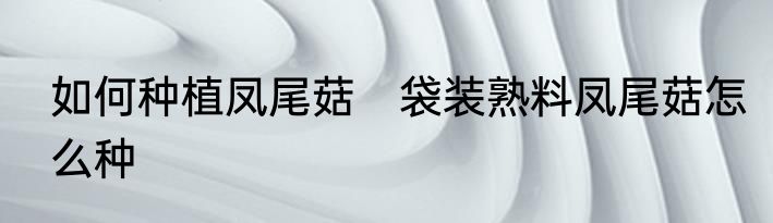 如何种植凤尾菇 袋装熟料凤尾菇怎么种