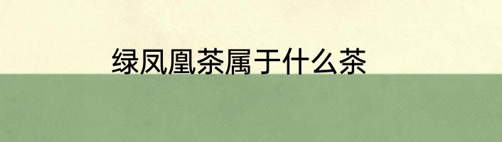 绿凤凰茶属于什么茶?