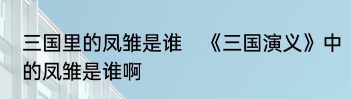 三国里的凤雏是谁 《三国演义》中的凤雏是谁啊