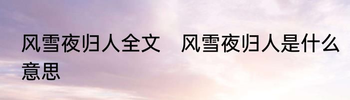 简介风雪夜归人全文?《风雪夜归人》出自于唐代诗人刘长卿的古诗《逢雪宿芙蓉山主人》全诗全文:“日暮苍山远,天寒白屋贫。柴门闻犬吠,风雪夜