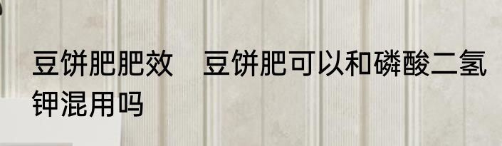 豆饼肥肥效 豆饼肥可以和磷酸二氢钾混用吗